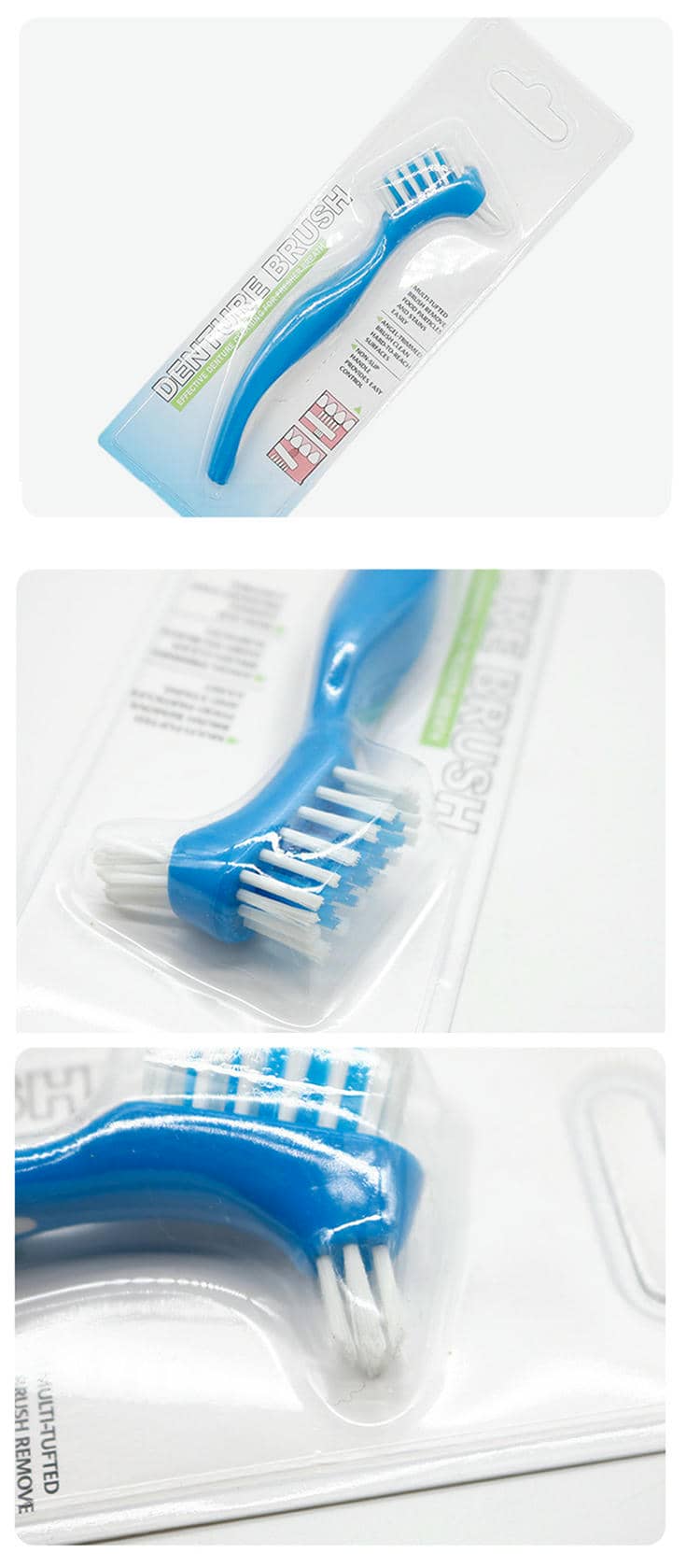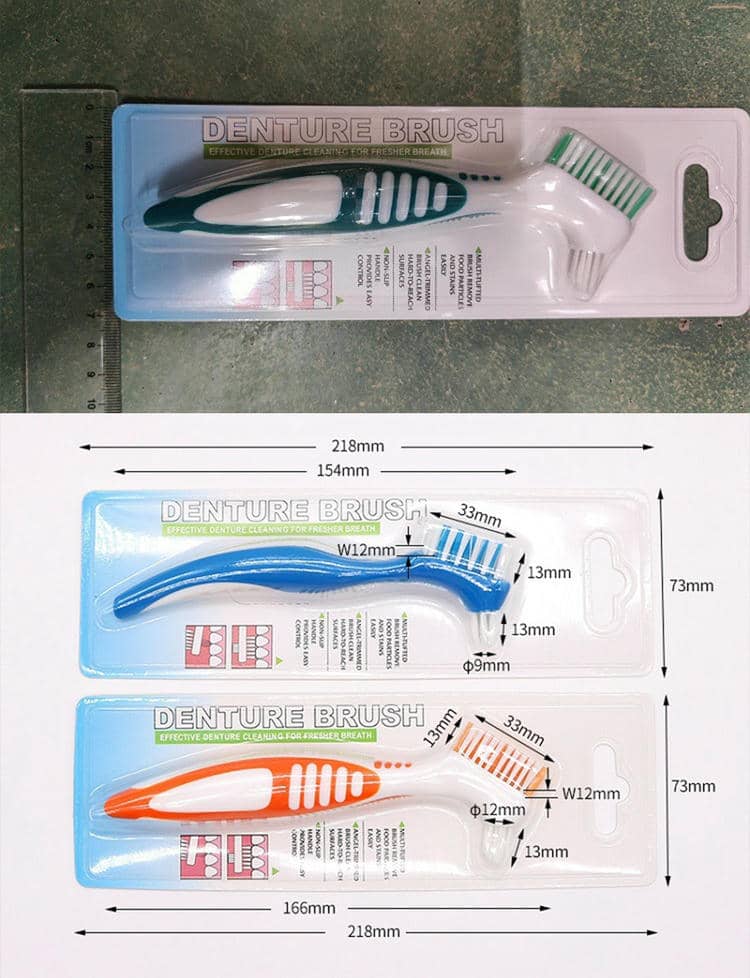 Single denture brush packaging size: length 21.5cm, width 7.2cm