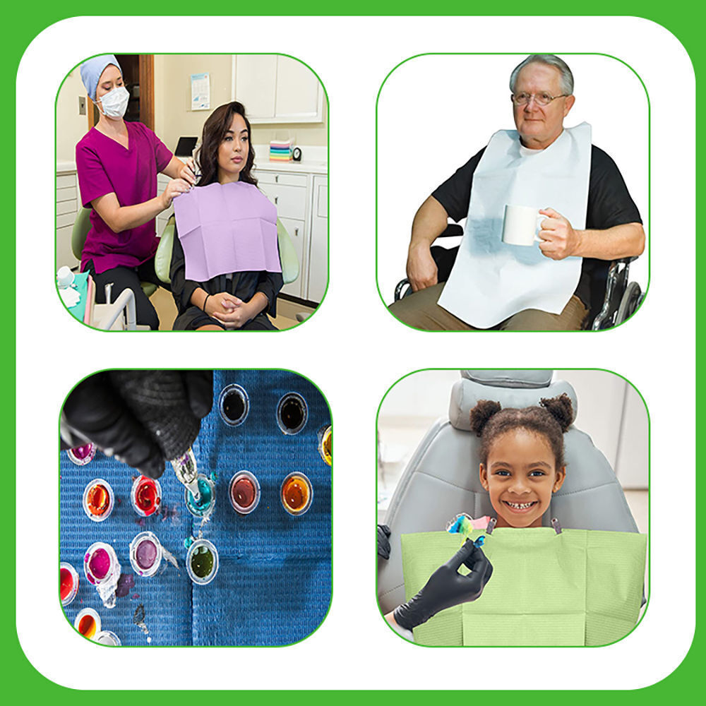 | Product Name: | Hot Selling Personalized 2 Ply Paper +1Ply Waterproof Film Biodegradable Disposable Dental Bibs For Medical |